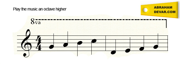 The octave symbol, 8va, when placed above the staff, the performer will play the indicated part, an octave higher than written.
