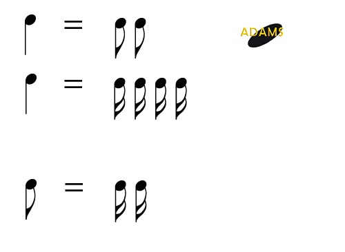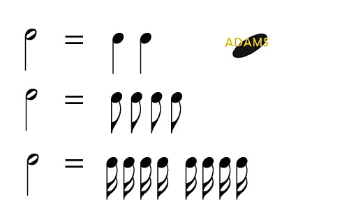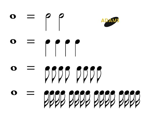 Take note of the following:One half note = 2 quarter notes / crochetsOne half note = 4 eighth notes / quaversOne half note = 8 sixteenth notes / semiquaversOne half note = 16 thirty second notes / demisemiquavers.